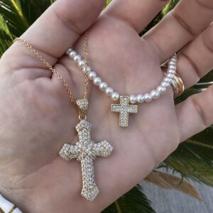 Collana in acciaio anallergico + ciondolo croce, Waterproof
